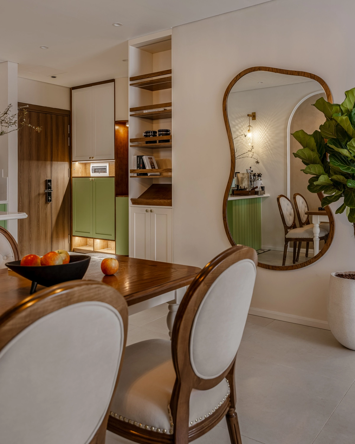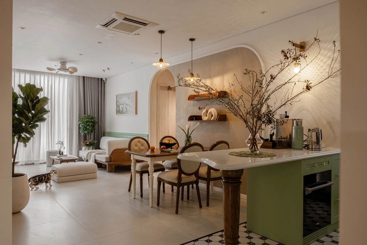 Các ô cửa hình vòm tạo độ mềm mại và làm điểm nhấn cho không gian nội thất.