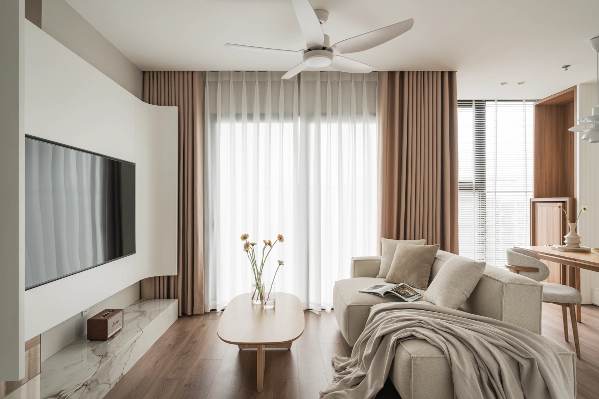 Phong cách hiện đại, tối giản với tông màu trắng chủ đạo, kết hợp chất liệu gỗ tự nhiên giúp căn hộ nhỏ trở nên rộng rãi. Cùng NHÀ ĐẸP SÀI GÒN tham khảo bài viết sau đây nhé!