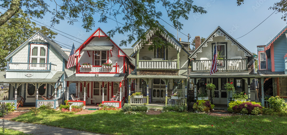 Oak Bluffs Carpenter Gothic (Massachusetts, Mỹ): Những căn nhà gỗ nhỏ nhắn trang trí gingerbread tinh tế, đưa Gothic Revival vào đời sống thường nhật.